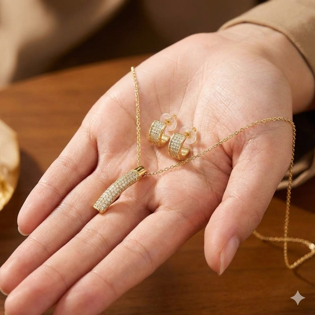 Crafted using high-quality imitation metal with premium plating. Avoid contact with water, perfume, sweat, and harsh chemicals to preserve shine and longevity. Store separately in a dry pouch or jewellery box.