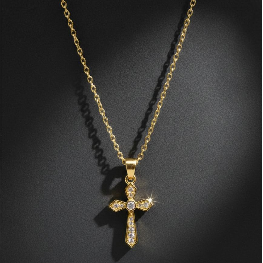Inspired by the timeless symbol of faith, hope, and protection, this cross pendant necklace represents strength, belief, and grace. Designed for women who appreciate meaningful jewellery with refined elegance, it blends spiritual symbolism with a modern gold finish—perfect for everyday wear or special occasions.