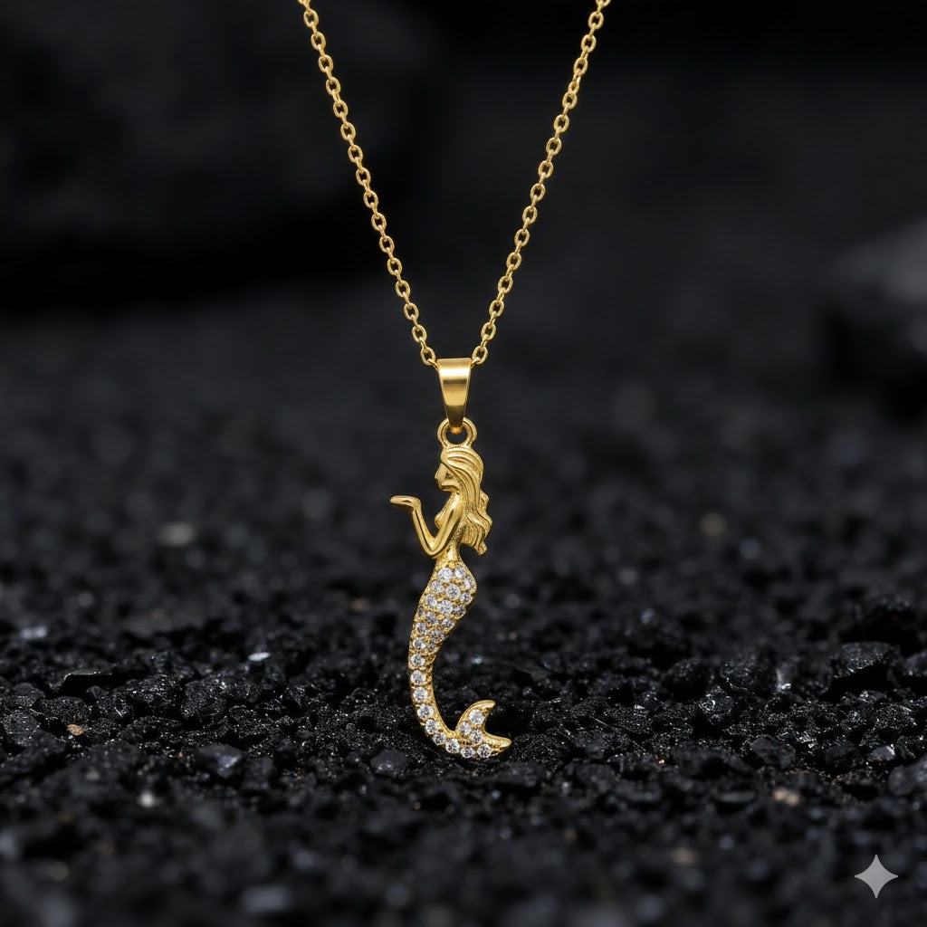 Gold Plated Mermaid Pendant Necklace for Women & Girls | Ocean Fantasy Inspired Fashion Jewellery